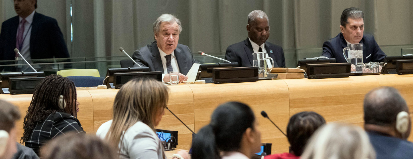 22 Enero 2020. El Secretario General, António Guterres (a la izquierda), informa a la Asamblea General sobre sus prioridades en 2020.