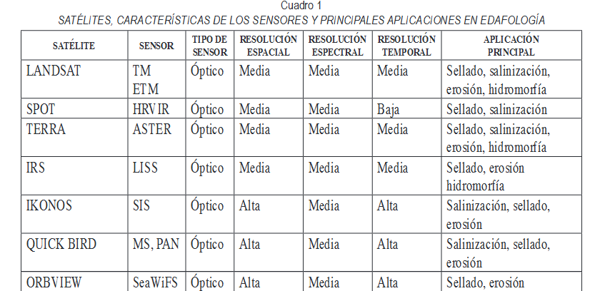 aplicados a estudios de recursos naturales se ha visto que estos resultan de gran utilidad para hacer un seguimiento de problemas de degradación y erosión en suelos. En los últimos años el acceso a imágenes de diferentes sensores caracterizados por altas resoluciones espectrales, espaciales y/o temporales permite analizar estos problemas desde distintos enfoques.